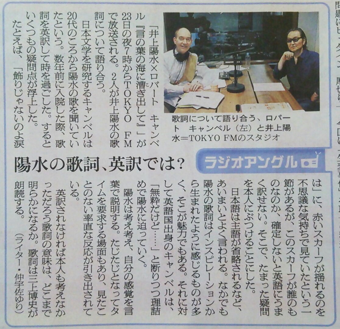 Bambi V Twitter 井上陽水 ロバート キャンベル 言の葉の海に漕ぎ出して 紹介記事を見てタイムフリーで聞いてみたら なかなか興味深くて面白かった 後半には ゼンマイじかけのカブト虫 の歌詞の話も